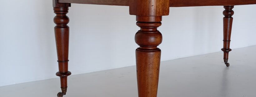 Stinkwood table with turned legs on castors late 19th C
